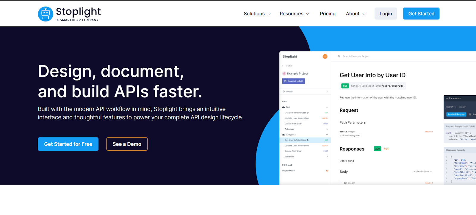 Stoplight offers a complete API design and documentation suite. Moreover, its visual editor lets you build APIs using a drag and drop interface while adhering to the OpenAPI specification. This makes it friendly for non developers and helpful for teams working on API first design strategies.