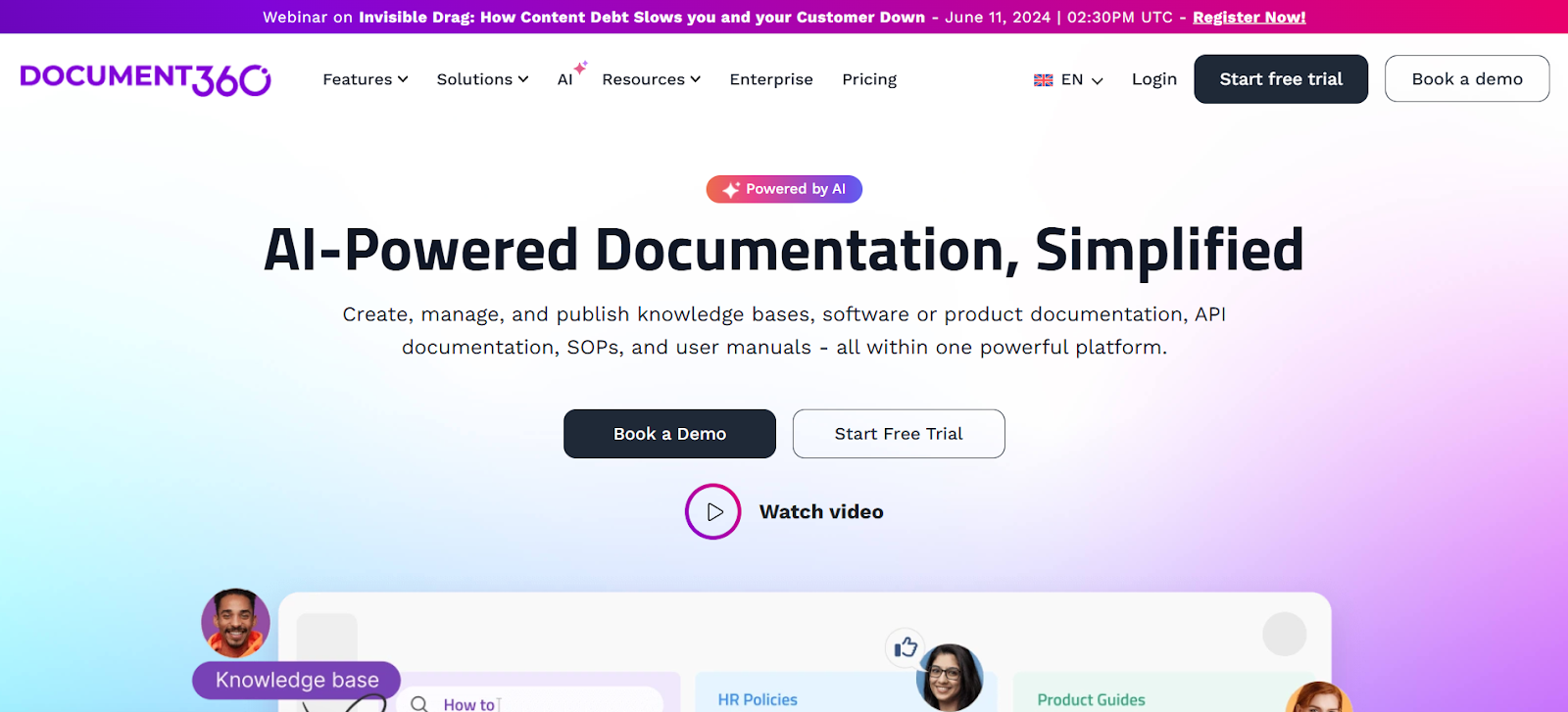 Document360 is a knowledge base and documentation platform that’s great for both API and general technical documentation. While it’s not API specific like Swagger, Document360 shines in its ability to organize large volumes of content and manage permissions.