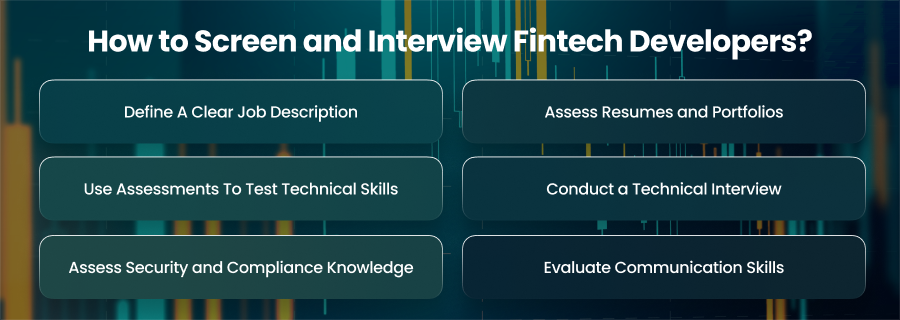 Examining the resumes and portfolios of the applicants is the next stage. To assess their abilities, you may also go through their GitHub accounts and any personal websites. You should look for projects or previous roles that demonstrate fintech experience, which could include banking apps and payment processing systems. Also, you should pay attention to contributions that indicate experience with handling sensitive data and API integrations.