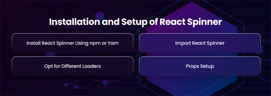In case you wish to implement the React Spinner component into your project, you will need to install it. Now, we will review the installation and configuration process of the React Spinner component.