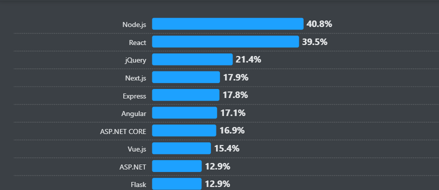 When it comes to web frameworks and technologies, React always wins. According to the Stackoverflow Developers Survey 2024, React is ranked # 2 in the web frameworks and technologies ranking.