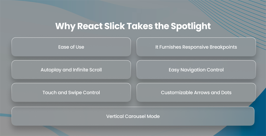 React Slick empowers developers to implement sliders anywhere they want with minimal configuration and maximum flexibility.