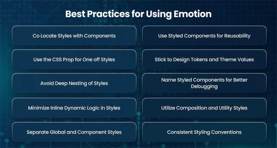 Emotion enables React developers to write clean and dynamic styles using modern CSS in JS techniques. For styled components and animations, it adapts to any project size or complexity. Also, by following all the best practices, developers can build consistent and maintainable UIs with speed using Emotion.