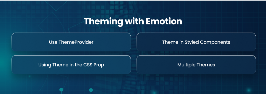 When you are using styled components with Emotion, the theme object becomes automatically available to all of them. Additionally, it enables you to directly utilize theme data in your component styles, including font settings. It also guarantees that the same standards are used in the construction of every component of your user interface.